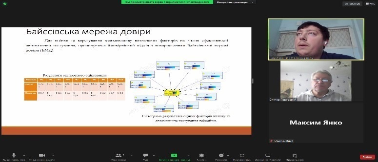 8 листопада 2023 року на кафедрі, в онлайн режимі, було проведено демонстрацію студентських наукових робіт. Активну участь у конференції взяли: студент 662 групи, Гаврилюк І. О. та його науковий керівник д.т.н., проф., Передерій В. І. Під час зустрічі учасники підняли питання, пов’язані із актуальною темою: «Визначення та оцінка факторів ефективності автоматичного тестування вебсайтів».