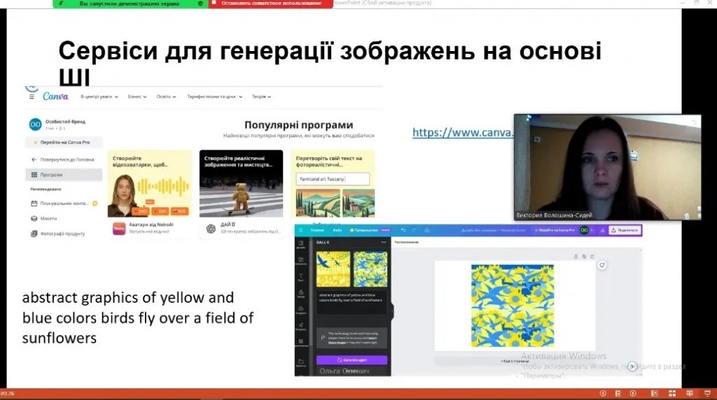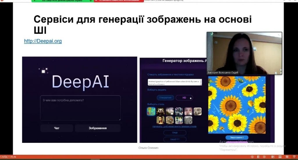 – програмне забезпечення з елементами штучного інтелекту для допомоги при підготовці до занять (Wolfram|Alpha, DALL-E, Midjourney, Deep Dream Generator).