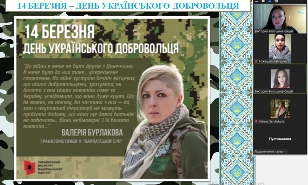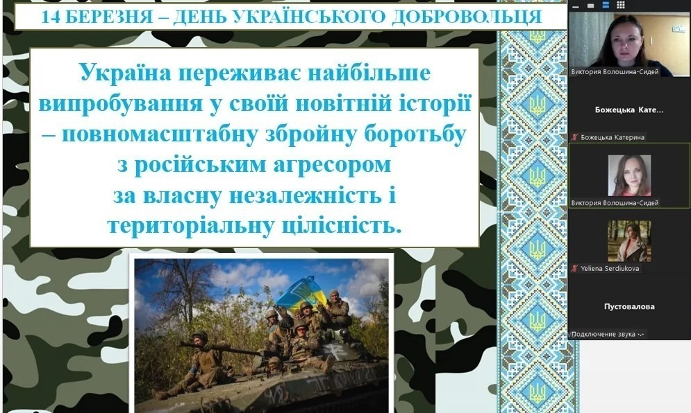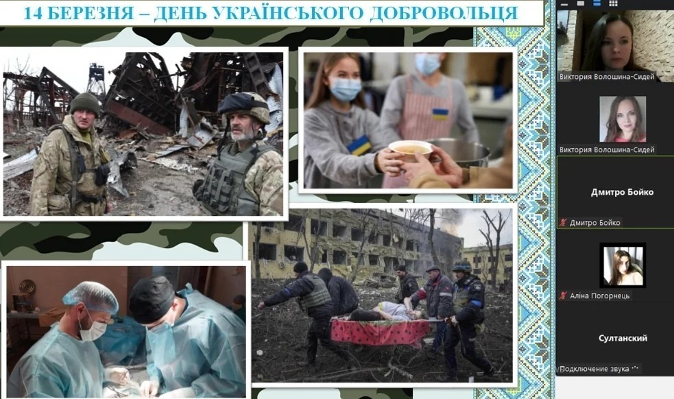 Студенти групи 479 спеціальності 072 Фінанси, банківська справа та страхування разом з куратором Волошиною-Сідей В.В. зібралися на виховну онлайн-бесіду, присвячену Дню Добровольця. Під час бесіди ми зосередились на важливості та значенні діяльності добровольців в сучасному суспільстві. Обговорення стосувалися різних аспектів волонтерства, включаючи його вплив на спільноту та можливість змінити світ навколо нас. Під час військової агресії важко оцінити роль добровольців, які незважаючи ні на що, стали на захист країни, підтримували міжнародні зусилля у протидії агресії Росії шляхом участі у військових операціях або надання допомоги міжнародним гуманітарним та миротворчим місіям.