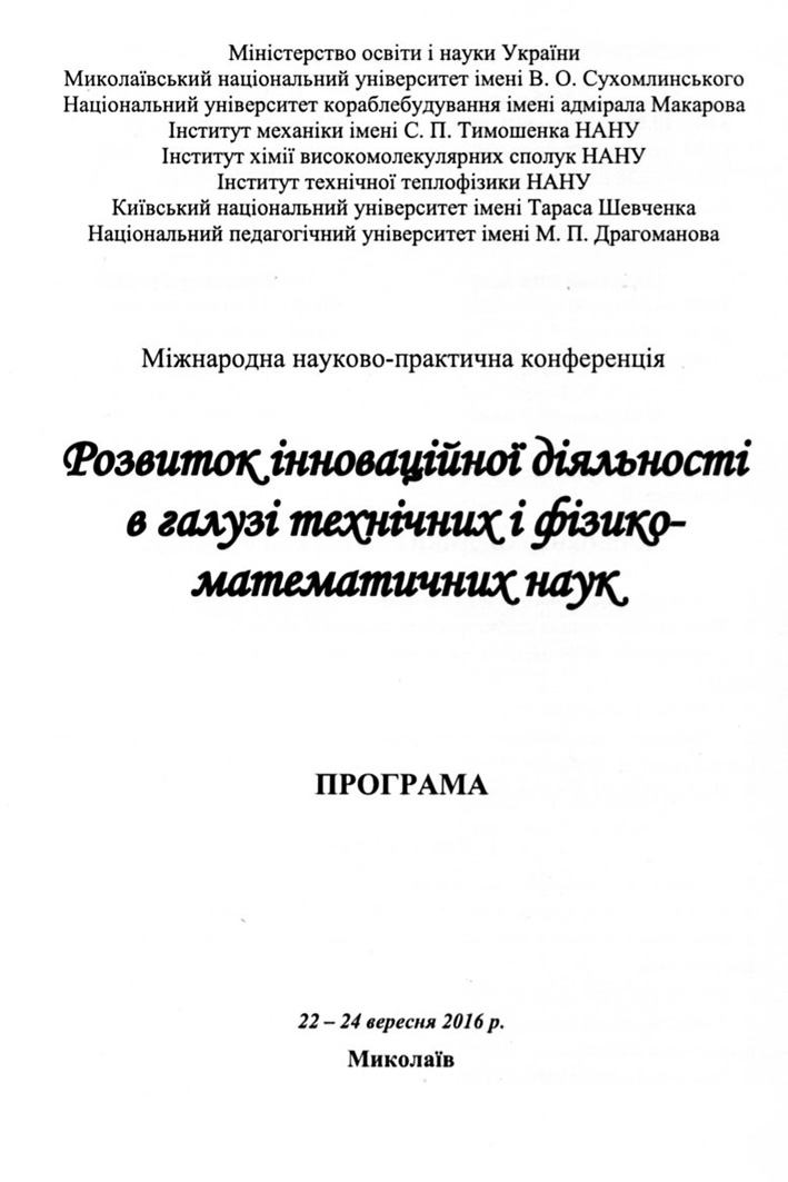 22-24 вересня 2016 року на механіко-математичному факультеті відбулася Міжнародна науково-практична конференція «Розвиток інноваційної діяльності в галузі технічних та фізико-математичних наук». З вітальним словом до присутніх звернувся ректор університету Будак В.Д. та декан механіко-математичного факультету А.В. Овчаренко. Робота конференції проходила за такими напрямами: