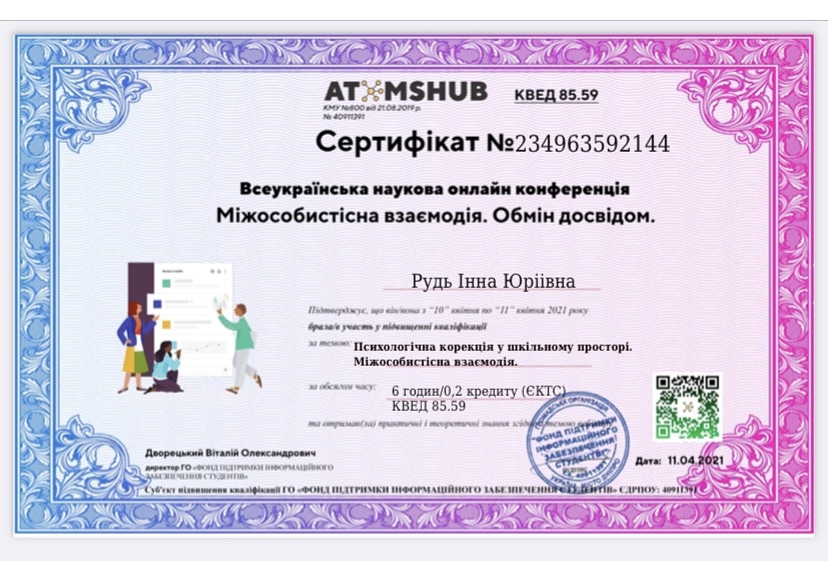 К.е.н., доцент кафедри фінансів та обліку Рудь І.Ю. прийняла участь у Всеукраїнській онлайн конференції “Міжособистісна взаємодія. Обмін досвідом.”, результатом якої стало підвищення професійної кваліфікації та здобуття практичних навичок з налагодження взаємодії зі студентами в умовах віддаленої роботи.