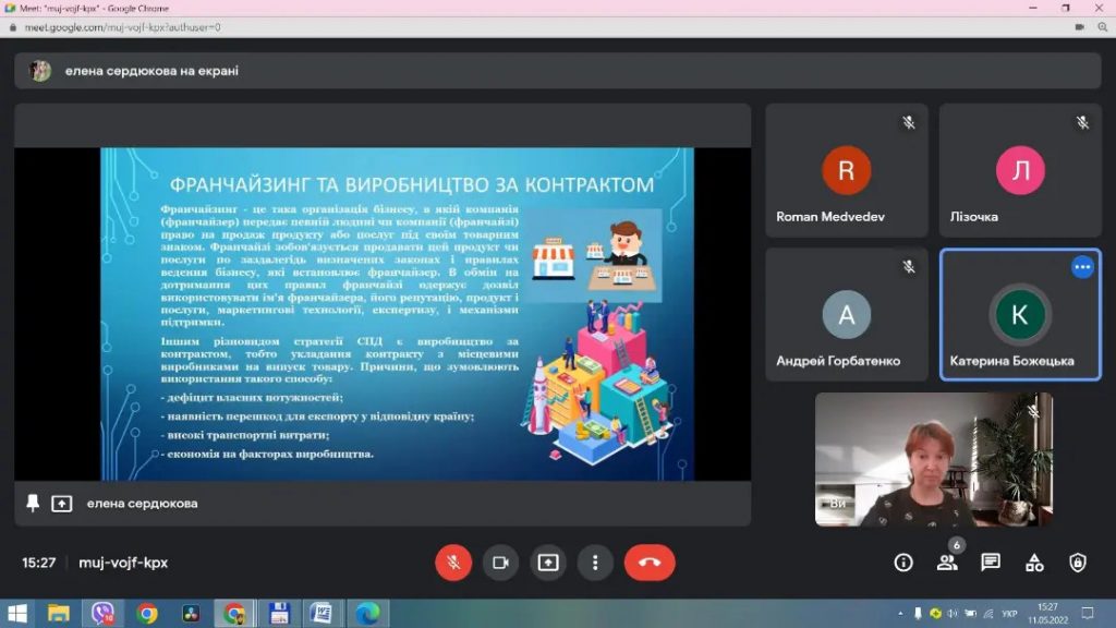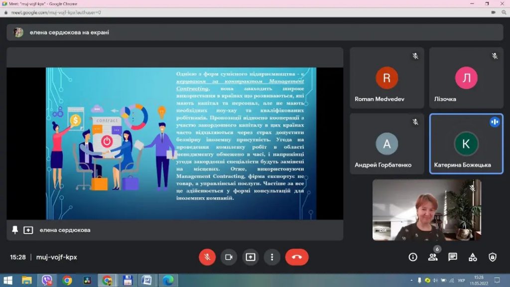 За ініціативою завідувачки кафедри економіки, менеджменту та фінансів, д.е.н., професора Стройко Т.В. було проведено круглий стіл на актуальну нині тематику, а саме: “Шляхи вирішення економічних проблем у воєнний та післявоєнний час”. За участю активних та талановитих студентів кафедри обговорили нагальні питання економіки України на “військових рейках” та проблеми інвестиційної діяльності в сучасних умовах. Саме інвестиції допоможуть відбувати Україну після перемоги. Наша молодь, наші студенти- це майбутнє мирної квітучої незалежної України.