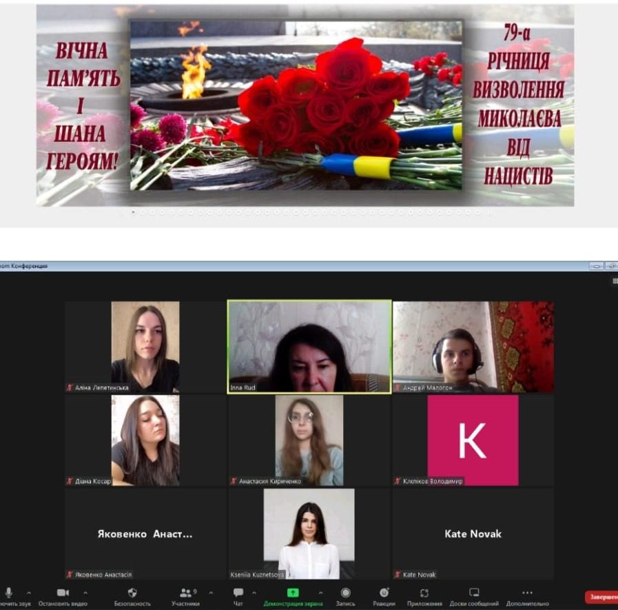 Історичне минуле, реалії сучасності та мрії про щасливе майбутнє сьогодні міцно переплелися у єдине. 28 березня на чолі з куратором к.е.н., доцентом Рудь І.Ю. в групах 579, 539, 559 відбувся захід, присвячений 79-й річниці визволення Миколаєва від нацистів.