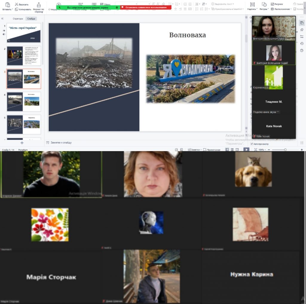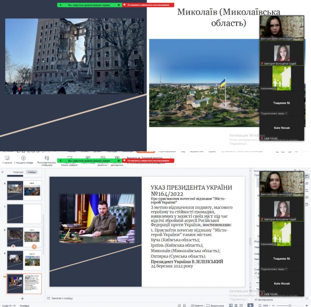 У рамках медійної кампанії #Міста Герої України доцентом кафедри економіки, менеджменту та фінансів Данік Н.В. було проведено виховний захід, під час якого здобувачі освіти мали змогу ознайомитися з історією міст Героїв України та героїчними подіями оборони цих міст у 2022 році. Переглянули світлини руйнацій цих міст, дійсно, втрати вражаючі, велика кількість будівель вже відновлені, особливо це стосується півночі країни. Болючим для усіх присутніх було обговорення саме оборони Миколаєва, адже для усіх це місто є рідним. Студенти розповіли про героїчні подвиги наших оборонців, які захищали ці міста. Вшанували пам’ять усіх полеглих у боротьбі з агресором хвилиною мовчання. Пишаємося нашим народом, пишаємося – містами Героями. Все буде Україна. Разом до перемоги.