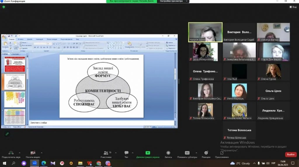 Відбувся черговий методичний семінар присвячений темі – “Ефективність діяльності ЗВО”. Доцент кафедри економіки, менеджменту та фінансів Данік Н.В. з використанням сучасних засобів онлайн-освіти та комунікації провела даний семінар для співробітників університету. Данік Н.В. провела презентацію пілотного проекту набору